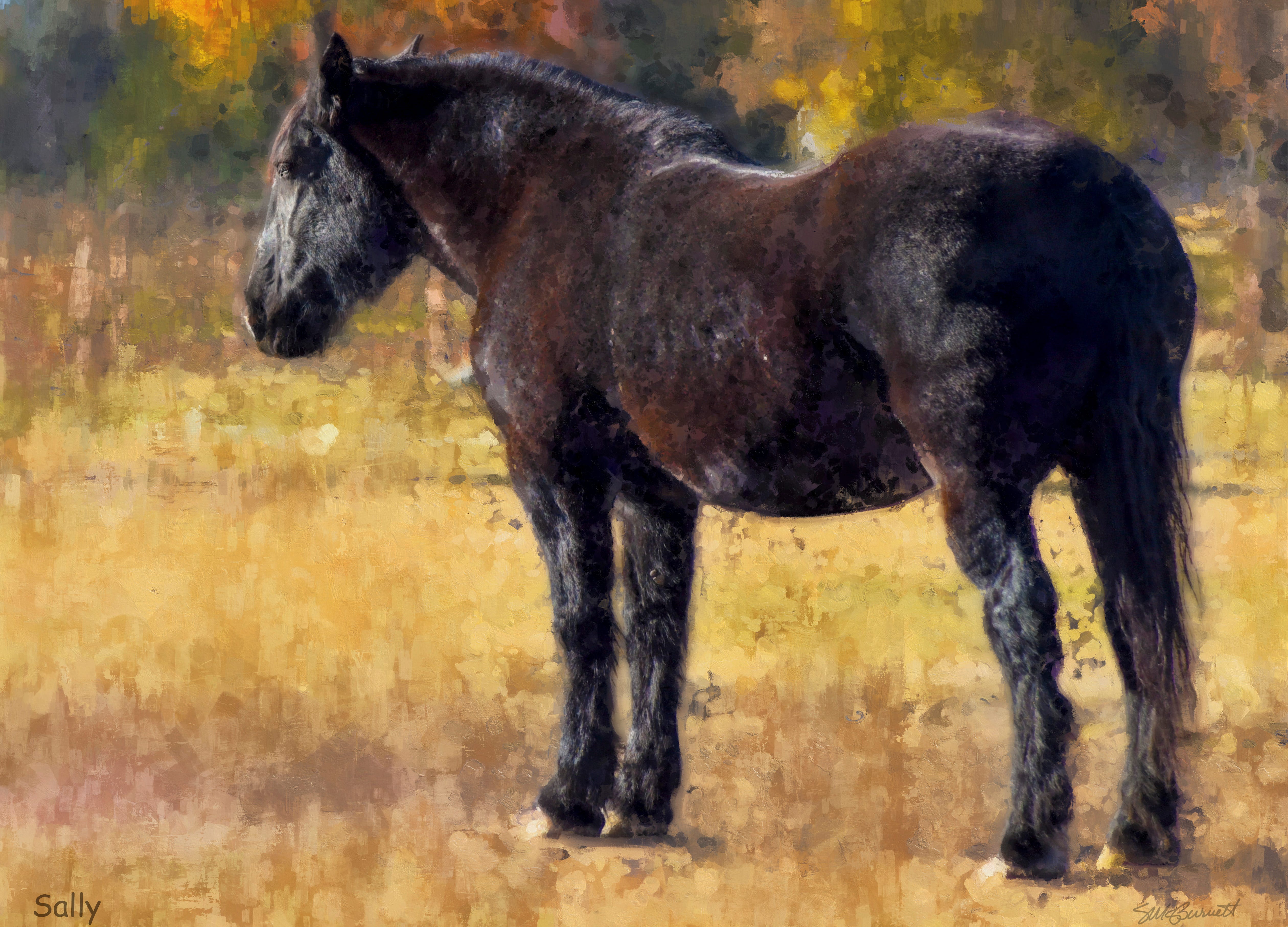 A few days ago a horse dear to me and many others died from colic. Sally, a stately black Clydesdale, was the kind of horse who stuck out a hoof with a smile. Hi! My name’s Sally! Who are you? The horse never met a stranger, and was one of the most delightful equines of my acquaintance. [In September I wrote about Sally here: Opening.]